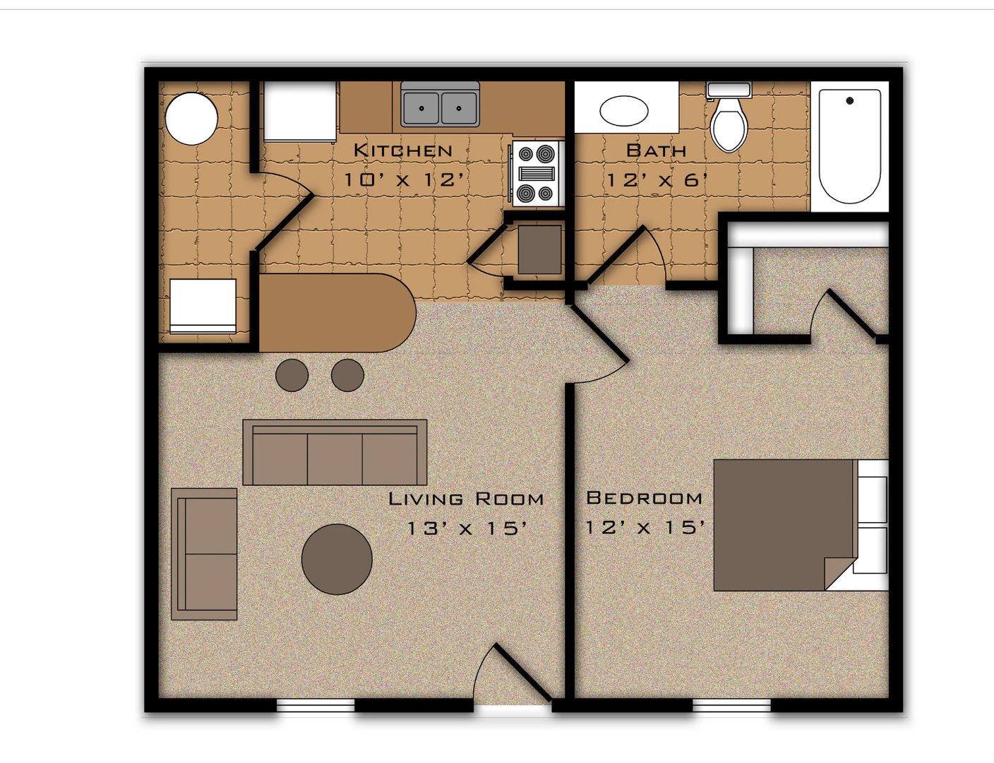 1 Bed Classic Unit 700 s.f.